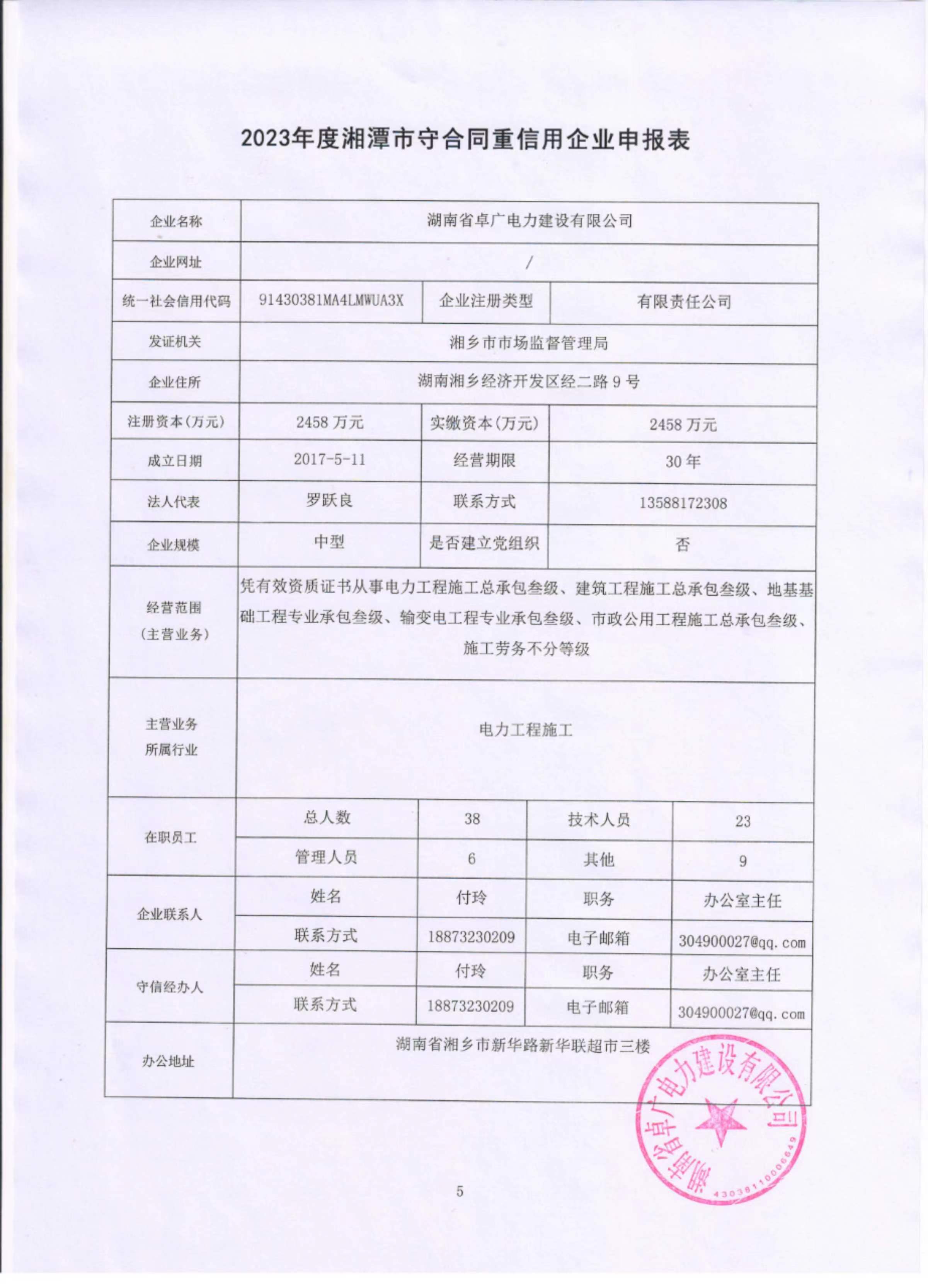本企業(yè)根據(jù)《湘潭市守合同重信用企業(yè)申報規(guī)定》等編制 2023 年度企業(yè)信用報告書,并保證本報告書內(nèi)容真實、準(zhǔn)確、完整。