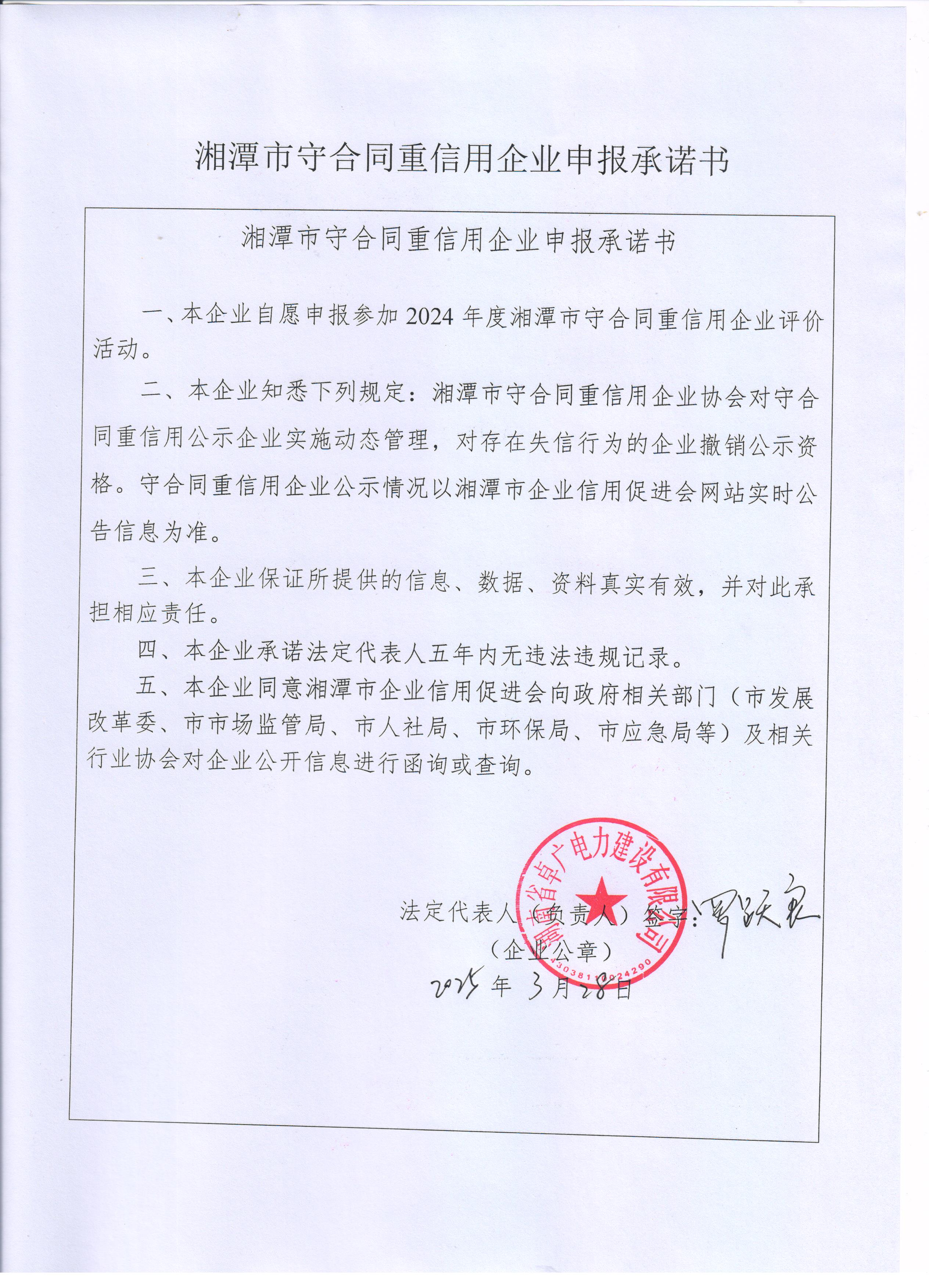 本企業(yè)根據(jù)《湘潭市守合同重信用企業(yè)申報(bào)規(guī)定》等編制 2024 年度企業(yè)信用報(bào)告書(shū),并保證本報(bào)告書(shū)內(nèi)容真實(shí)、準(zhǔn)確、完整。