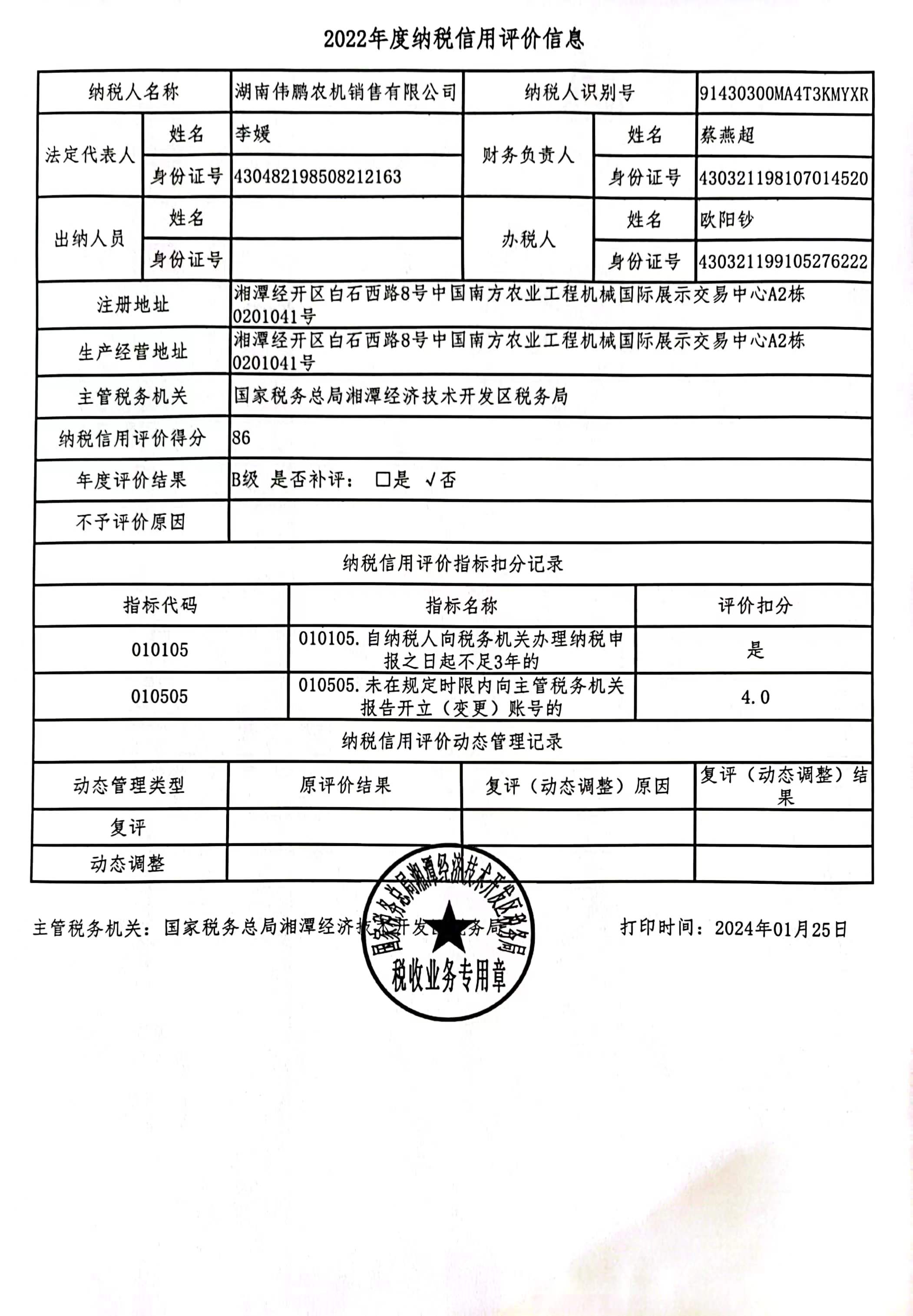 企業(yè)納稅信用等級報告:
