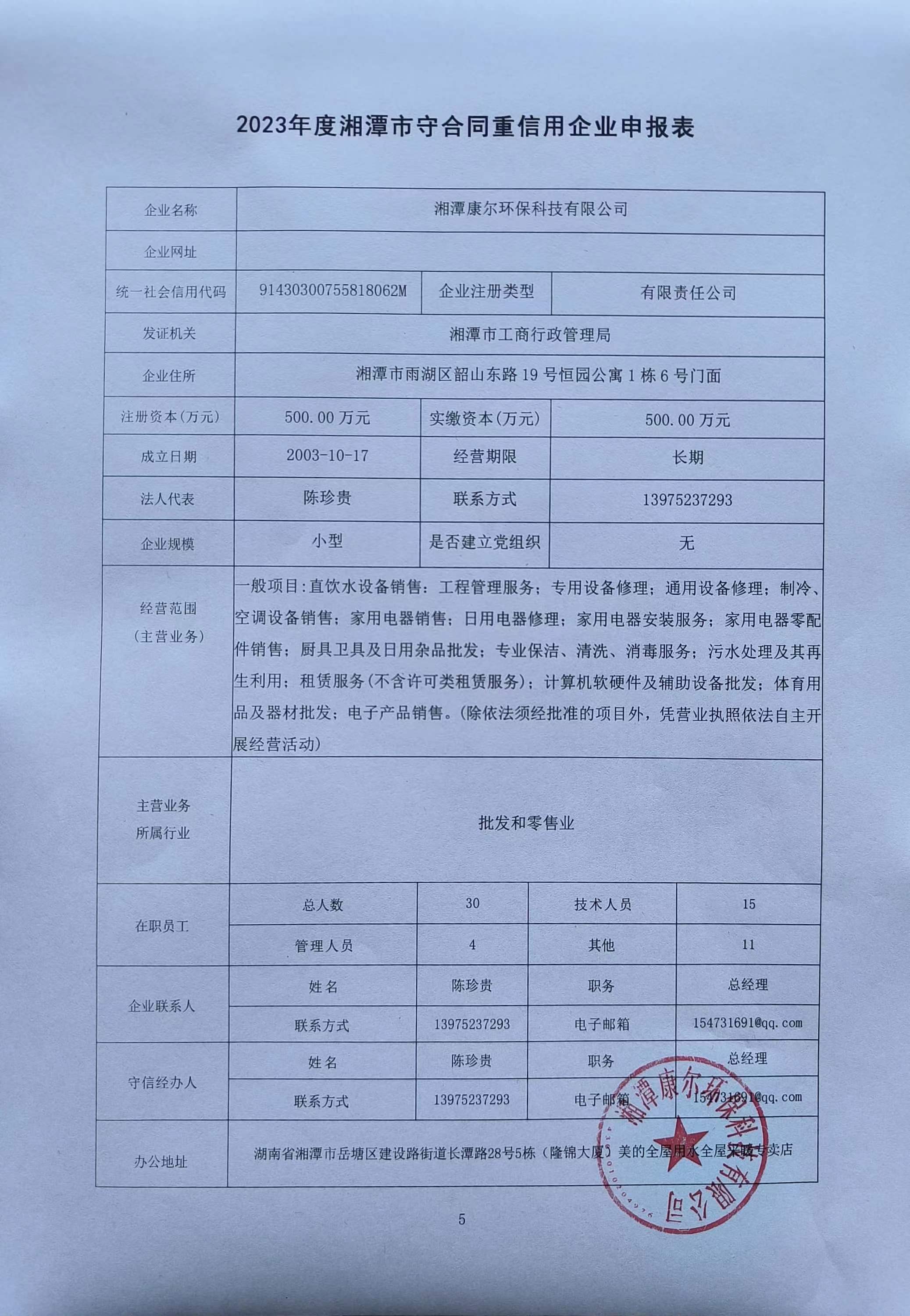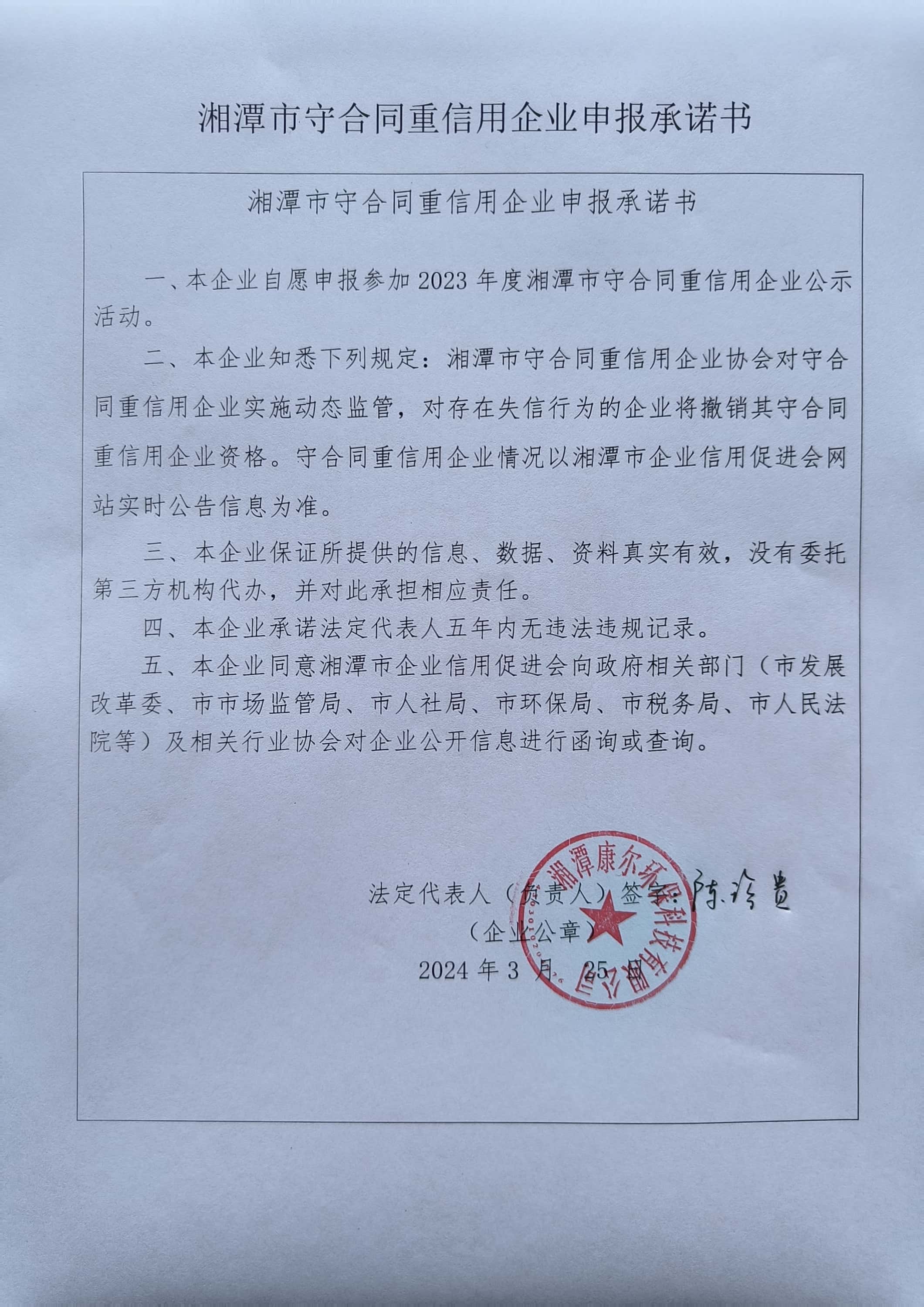 本企業(yè)根據(jù)《湘潭市守合同重信用企業(yè)申報規(guī)定》等編制 2023 年度企業(yè)信用報告書,并保證本報告書內(nèi)容真實、準(zhǔn)確、完整。